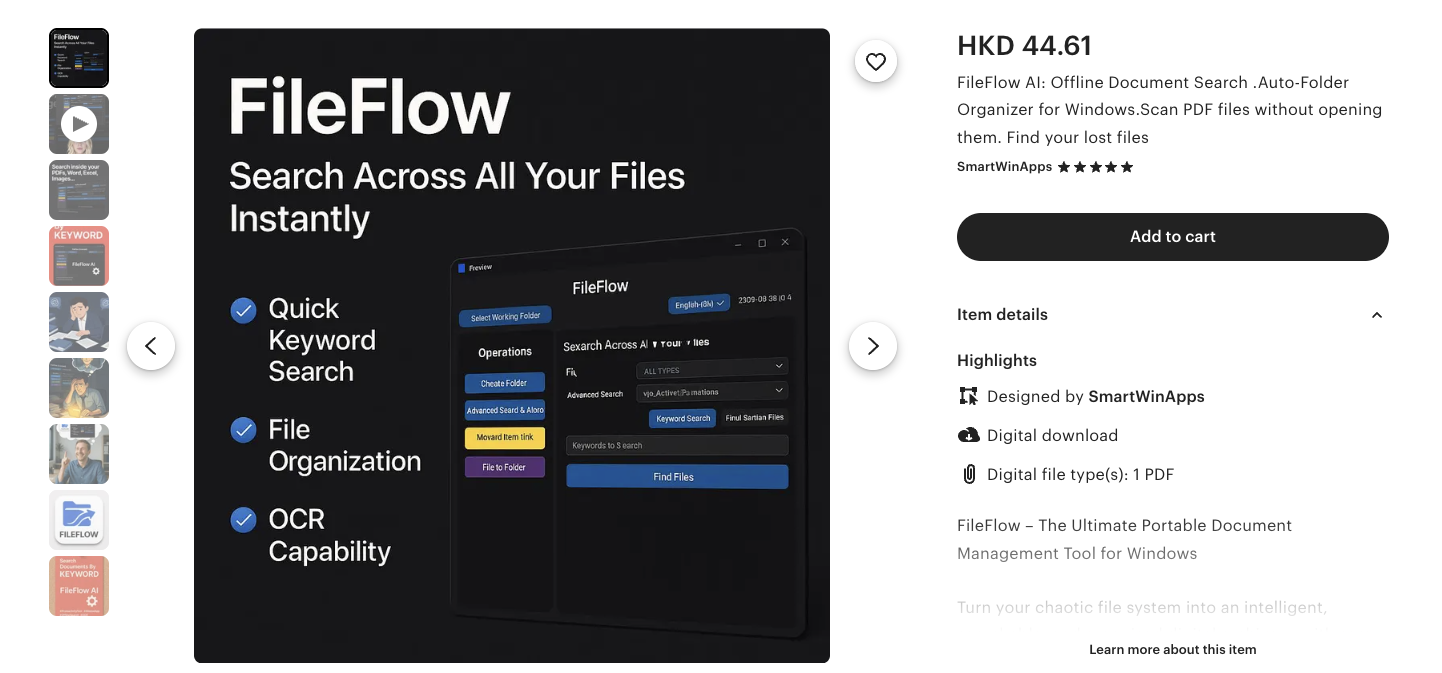 Etsy Link: https://www.etsy.com/hk-en/listing/4317869707/fileflow-ai-offline-document-search-auto?etsrc=sdt