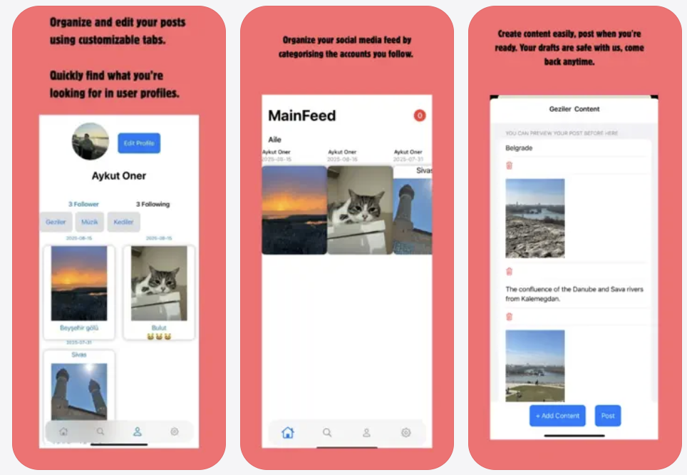 Sait Swift ve SwiftUI eğitimlerini tamamladıktan sonra bir sosyal medya yazmaya başlamış ve güvenlik, alakalı paylaşım gösterilmesi vb. konulara odaklanarak ortaya yeni bir ürün çıkartmayı hedeflemiş. İlk uygulamasını da App Store’a koymuş ve içerisinde paylaşım yaparken aynı zamanda söylenen özellikleri de değiştirebileceğiniz fonksiyoneliteler barındırıyor. Linke buradan ulaşabilirsiniz: https://apps.apple.com/us/app/infovotecast/id6749334558