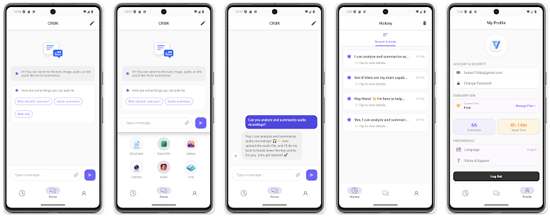 1) Crux: AI Chat & Summary – Furkan Fidanoğlu – Android