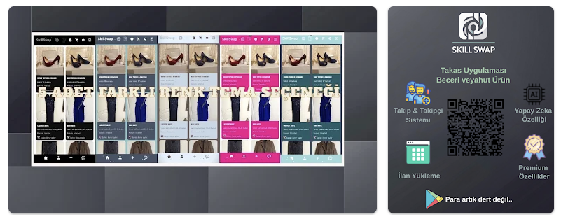 Arda’nın geliştirdiği bu Android uygulamasını sahip olduğunuz ürünleri ya da yetenekleri takas etmek için kullanabiliyorsunuz. İçerisinde arkadaş ekleme, mesajlaşma, AI desteği alma gibi modüller bulunuyor. Arda’nın eline sağlık diyoruz, uygulamaya buradan ulaşabilirsiniz: https://play.google.com/store/apps/details?id=com.ardag.skillswap